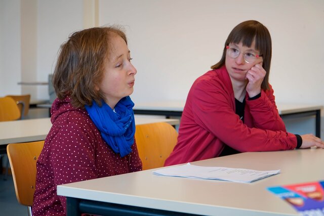 Beide besuchten eine Schule mit dem Förderschwerpunkt geistige Entwicklung. Darüber hinaus haben sie auch inklusive Lern-, Arbeits- und Freizeiterfahrungen gesammelt, so dass die Erfahrungsexpertise des Zentrums im Bereich des inklusiven (außer)schulischen Lernens erweitert werden kann. Gleichzeitig sollte bewusst zwei Frauen mit Behinderungserfahrung eine Perspektive auf eine Tätigkeit im Bildungsbereich eröffnet werden.