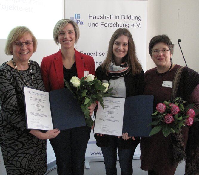Der Verband "Haushalt in Bildung und Forschung e.V." (HaBiFo) hat erneut zwei Preise für exzellente Abschlussarbeiten im Lehramt vergeben. Beide Auszeichnungen gingen an Wissenschaftlerinnen der Pädagogischen Hochschule Heidelberg: In der Kategorie Dissertationen wurde Dr. Nicola Kluß, in der Kategorie Bachelor- und Masterarbeiten Lisa Wolff geehrt; beide sind im Fach Alltagskultur und Gesundheit verortet. Die Verleihung fand im Rahmen der Jahrestagung "Zwischen Steigerungslogik und Postwachstum - Bildung für private Lebensführung" statt. Die Pädagogische Hochschule Heidelberg gratuliert sowohl Nicola Kluß als auch Lisa Wolff herzlich zu diesem Erfolg.