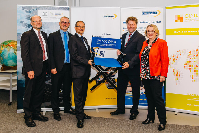 Der erste UNESCO Chair in Baden-Württemberg wurde an der Pädagogischen Hochschule Heidelberg in der Abteilung Geographie eingerichtet. Der Lehrstuhl für Erdbeobachtung und Geokommunikation von Welterbestätten und Biosphären­reservaten verknüpft erstmals digitale Geomedien zur Umweltforschung mit Fragen der Umweltbildung, um insbesondere Kindern und Jugendlichen aufzuzeigen, wie schützenswert das kulturelle und natürliche Erbe der Menschheit ist. In Anwesenheit von Theresia Bauer, Wissenschaftsministerin des Landes Baden-Württemberg, überreichte Dr. Miguel Clüsener-Godt (UNESCO Paris) am 25. Oktober 2016 die offizielle Urkunde an Professor Dr. Hans-Werner Huneke, Rektor der PH Heidelberg. Dieser richtete im Anschluss den Lehrstuhl gemeinsam mit Professor Dr. Alexander Siegmund, Leiter der Abteilung Geographie, symbolisch ein.