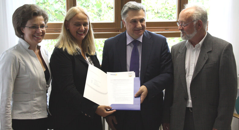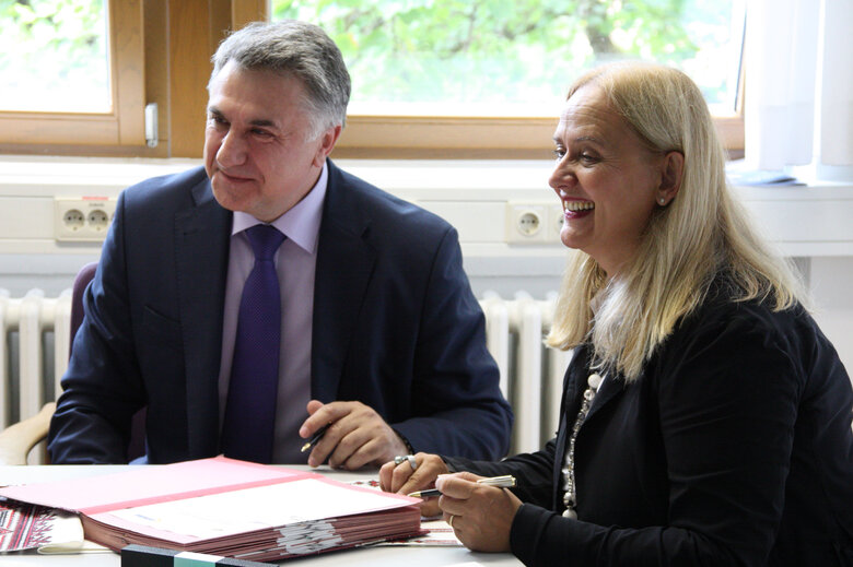 Am Ende des Besuches unterzeichneten Prof. Dr. Viktor Ogneviuk, Rektor der Universität in Kiew, und Prof. Dr. Anneliese Wellensiek ein Strategiepapiere zur Kooperation zwischen beiden Hochschulen.
