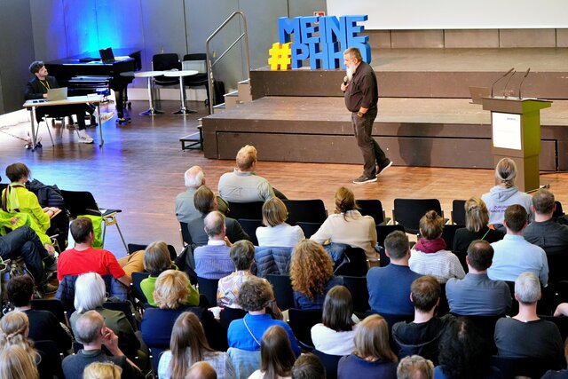Zu Gast waren auf Podium 1 „Gesellschaft“ Gerhard Brand, Bundesvorsitzender des Verbands Bildung und Erziehung, Monika Stein, Landesvorsitzende der Gewerkschaft Erziehung und Wissenschaft, und Rita Haller, zweite Vorsitzende des Landesschulbeirats Baden-Württemberg. Auf Podium 2 „Praxis“ diskutierten Sabine Horn, Rektorin Geschwister-Scholl-Schule Heidelberg, Referendar Patrick Götzinger und Studentin Franca-Juliana Brunke. Podium 3 „Politik“ bestand aus den Landtagsmitgliedern Nadyne Saint-Cast, Bündnis 90/Die Grünen, und Dr. Stefan Fulst-Blei, SPD, sowie Prof. Dr. Peter Kirchner, Sprecher der PH-Prorektor:innen Studium und Lehre.